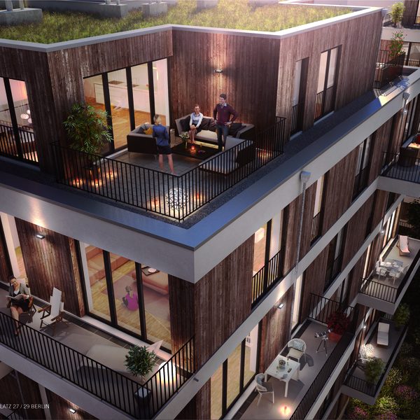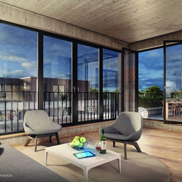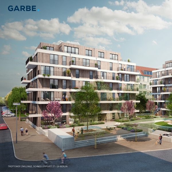 Mit den zwei 7-Geschossern am Schmollerplatz in Berlin realisieren DeepGreen und Garbe Immobilien Projekte Europas erste Mehrfamilienhäuser der Gebäudeklasse 5 in leimfreier Massivholzhybridbauweise. Die von DeepGreen entwickelte Fassadenkonstruktion, welche bereits beim Woodcube in Hamburg eingesetzt wurde, ermöglicht es dem Bauherren Garbe Immobilien Projekte u.a. auf eine Brandschutzkapselung zu verzichten. Eine absolute Revolution im Geschosswohnungsbau. Zusätzlich erzielen die äußerst schmalen Wandaufbauten (ca. 30 cm) im Vergleich zu konventionellen Bauweisen, bei gleicher Wärmedämmleistung, eine maximal effiziente Flächenausnutzung. Baubeginn war bereits Mitte 2015. Beginn der Holzbauarbeiten ist im September angesetzt. Dank der komplett vorgefertigten Massivholzelemente und den vereinfachten Bauabläufen rechnet DeepGreen mit einer Fertigstellung der Massivholzhülle nach drei Monaten.